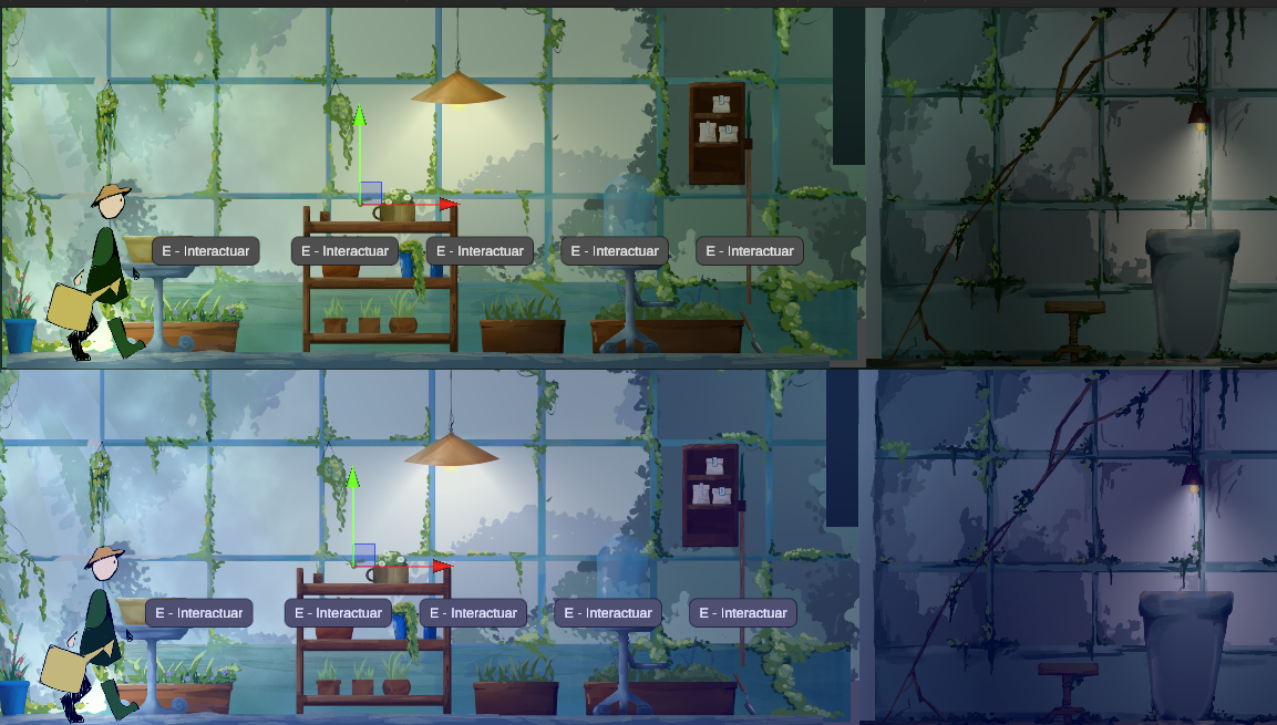 It is an investigation game where the player must take care of different plants with unique behaviors that develop and interact with the environment. The main mechanics are that the player must learn through observation, trial and error, the behavior of each plant and how it affects the others and the greenhouse.